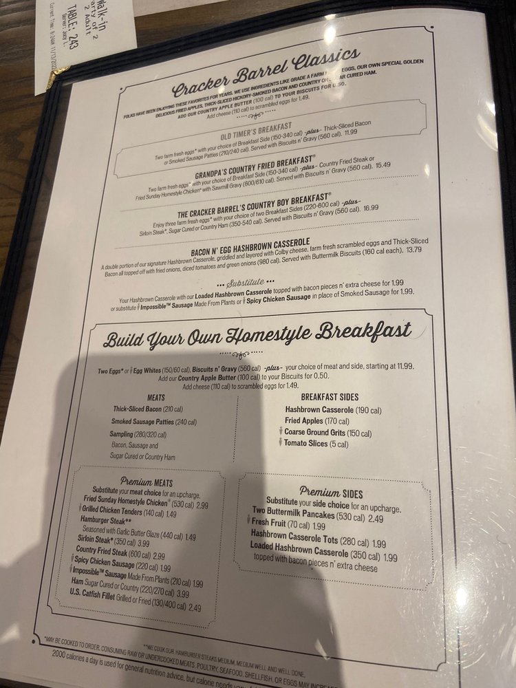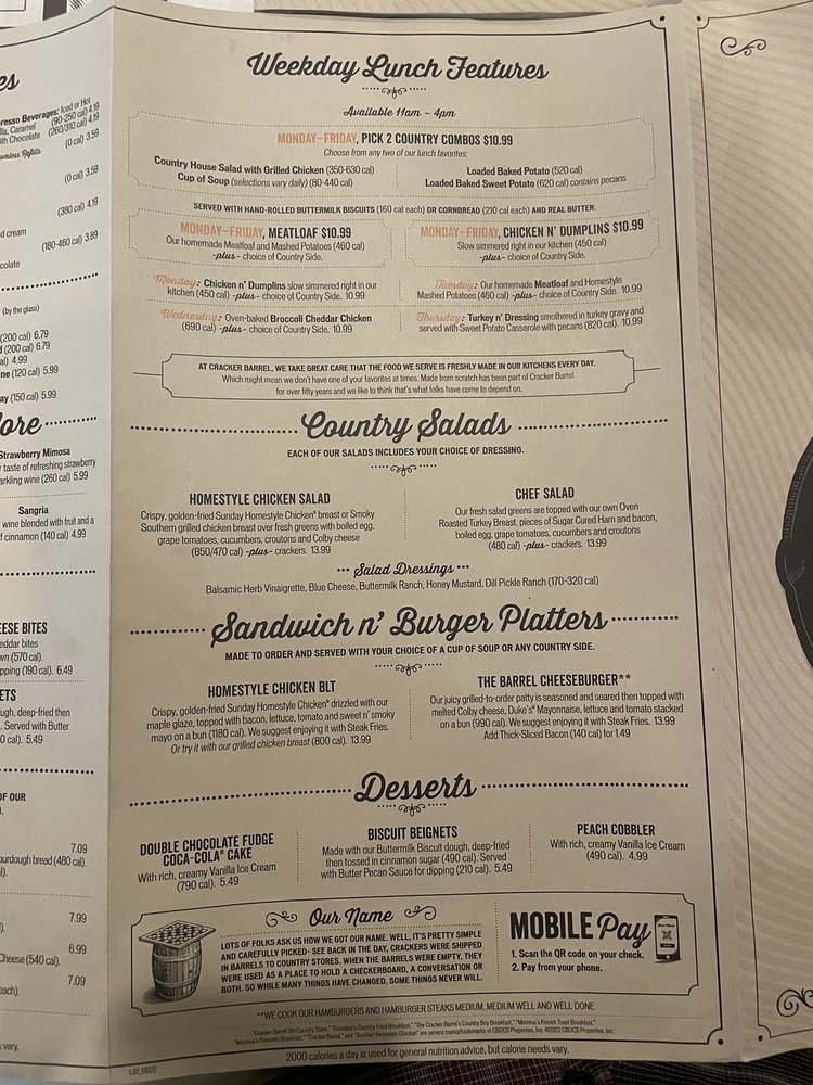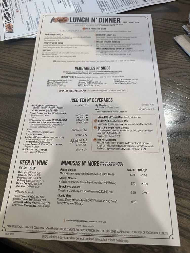 Welcome to Cracker Barrel Old Country Store Bakersfield, where hearty American breakfasts and indulgent country classics await you. Nestled in the heart of Bakersfield, this charming eatery offers a menu that celebrates comfort food with a delightful twist. Dive into their all-day breakfast selections, such as the Fresh Strawberry Pancake Plate, featuring fluffy pancakes crowned with fresh strawberries, or savor the rich flavors of the Country Peach Pancake Plate.