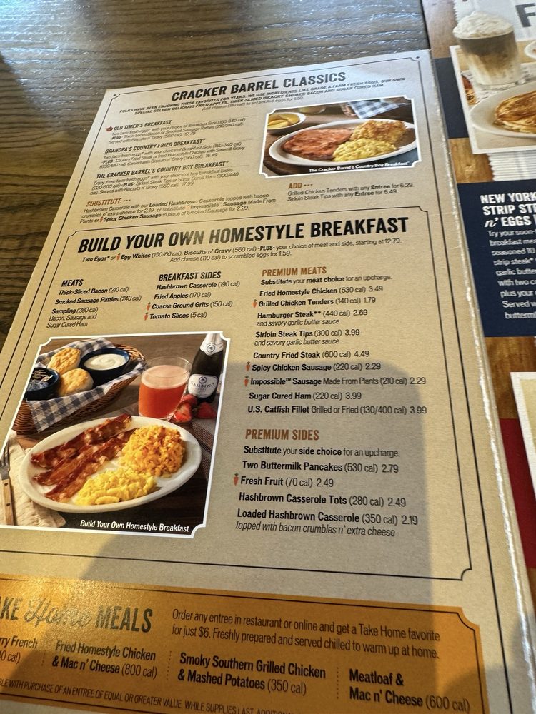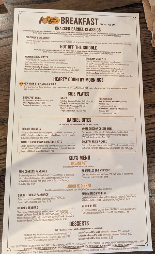Beyond breakfast, the menu boasts robust options like the tender Pot Roast, slow-cooked to perfection, and a satisfying 10 oz New York Strip Steak. Don't miss their innovative Biscuit Beignets, a sweet treat that elevates biscuits to dessert status. With a warm and inviting ambiance, and exceptional staff ready to ensure a memorable dining experience, Cracker Barrel in Bakersfield is truly a must-visit culinary gem.